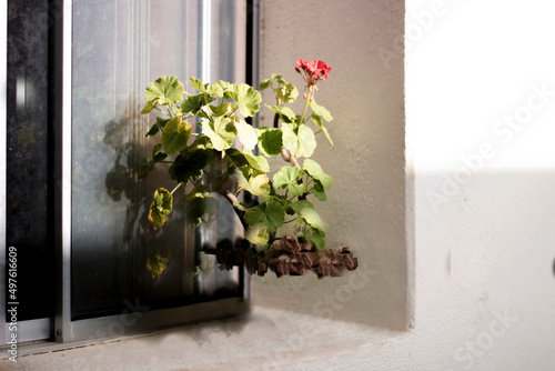 flower, flower, plant, wall, garden, pot, house, pink, summer, nature, window, decoration, home, leaf, geranium, bloom, flowerpot, spring, floral, vase, building, old, bouquet, door, surrealist