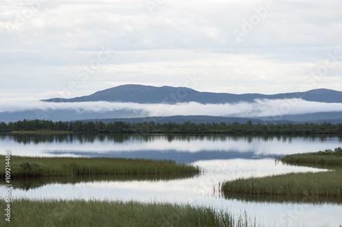 lake, cloud, nature, grass, landscape, day, outdoors, horizontal, nobody, fog, mountain, plant, coast, weather, water, flames, rural scene, cliff