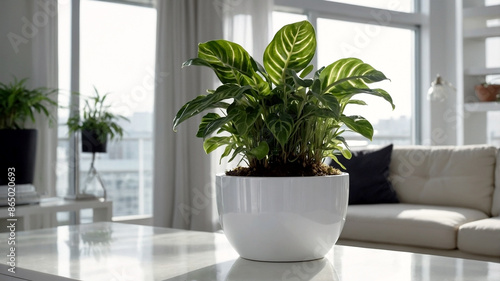plants on a white plant pot in a condominium, growing plants in a Modern Condominium, eco, green plants, Nature in a City life, close-up plants in a white condominium.