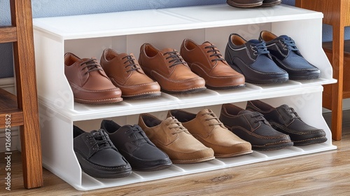 Plastic shoe cabinet with simple white compartments