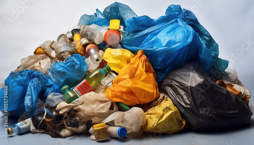 Plastic Waste Pile Blue Yellow Black Garbage Bags
