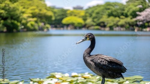 bird, lake, water, nature, greenery, bright, light, lush, surrounding, playful, interaction, wildlife, environment, scene, calmness, peaceful, summer, day, blue, calm, pool, flora, fauna, cormorant, relaxed, serene, vibrant, aquatic, habitat, sun, nature reserve, colourful, depth, landscape, vista, view, photo, beautiful, scenic, leisure, natural, foliage, lily pad, vivid colors, harmony, leisure time