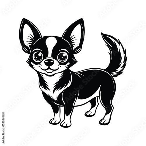 chihuahua, dog, animal, pet, cartoon, illustration, black-and-white, silhouette, cute, playful, happy, friendly, standing, white background, graphic, vector, simple, clean, modern, character, design, icon, logotype, sticker, isolated, puppy, white, canino, small, breed, mammal, domestic, sitting, purebred, brown, portrait, puppy, pet, adorable, young, funny, doggy, little