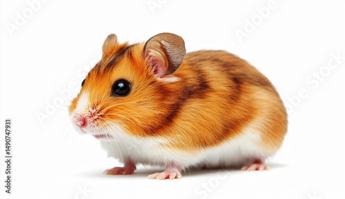 Playful golden hamster in a studio setting detailed close-up photography captivating animal portrait white background realistic artistry