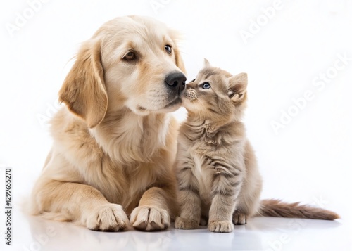 kitten, puppy, pet, animal, adorable, cute, friendship, playful, hug, kiss, white background, studio photography, dog, cat, love, pet, golden retriever, best friend
