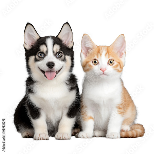 kitten, puppy, playful, isolated, transparent, pet, cute, companionship, friendship, adorable, cat, dog, furry, fun, domestic, cheerful, bonding, joy, pair, youth