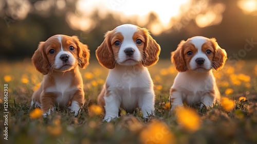 puppy, meadow, flower, sunlight, adorable, pet, outdoors