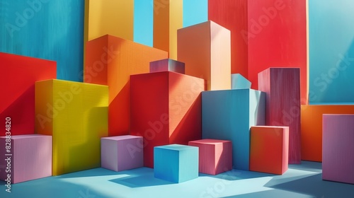 Playful Stacks of Colorful 3D Blocks - Vibrant and Dynamic Photography Concept