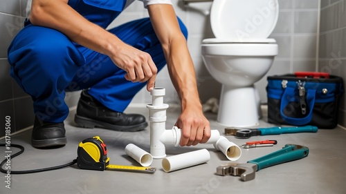 plumber, plumbing, bathroom, tool, work boot, overall, crouching, repair, maintenance, tape measure, wrench, privies, hand, sharpened, visibility, home improvement, bricolage, construction, shopkeeper, professional, service, installation, residential