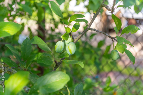 plum, green, ripening, garden, farming, berry, fruit, health, summer, warmth, tree, tree branch, vegetarianism