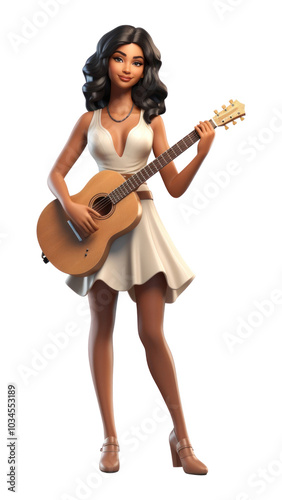 cartoon, guitar, adult, illustration, cute, three-dimensional, toy, woman, person, portrait, music, woman, musical instrument, clothing, fashion, shoe, accessory, electric guitar, transparent, animation, musician, creative, graphic, jewellery, element, europa, dress, human, white, earth, body, doll, skin, elegance, character, happiness, necklace, cut-out, female, style