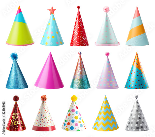 accessory, celebration, decoration, transparent, collection, birthday, colourful, isolated, new year, pattern, design, element, festive, striped, mixed, party, photo, polka, hat, year, dot, new, set