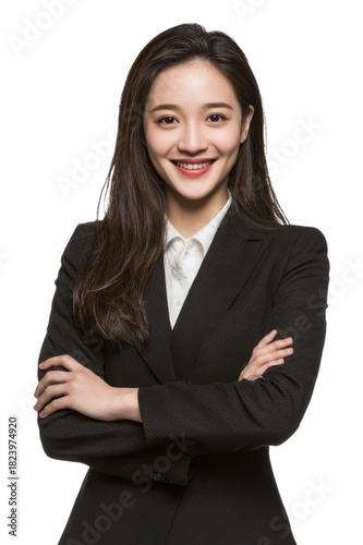 woman, portrait, crossed, business, confident, chinese, happy, photo, smile, arm, suit, person, accessory, white background, background, camera, face, hair, photo, transparent, clothing, effect, adult, human, white, head, professional, beautiful, cinematic, lighting, smiling, jacket, long, iso, isolated, apparel, attire, blazer, female, coat, deep, attaching, pose, taken, formal