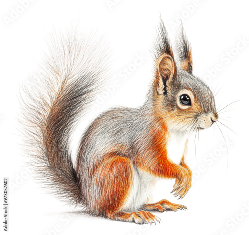 squirrel, red, illustration, art, wildlife, animal, nature, drawing, fur, profile, creative, detailed, portrait, cute, forest, species, habitat, rodent, playful, anatomy, tail, realism, vignetting, colours, vibrant