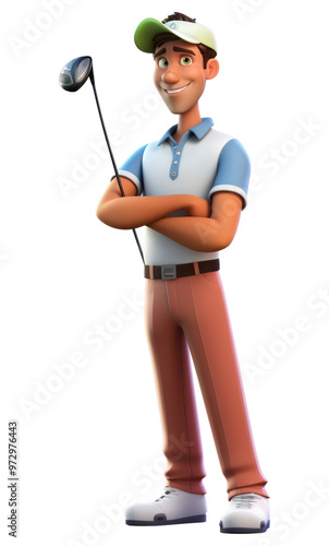 golf, cartoon, sport, portrait, green, three-dimensional, adult, human, retro, illustration, golf course, activity, cut-out, holding, golfer, people, white, body, transparent, young adult, recreation, animation, character, golf club, athlete, element, graphic, looking, player, render, skill, earth, cartoonish, diversity, photogenic, hispanic, isolated, standing, creative, style