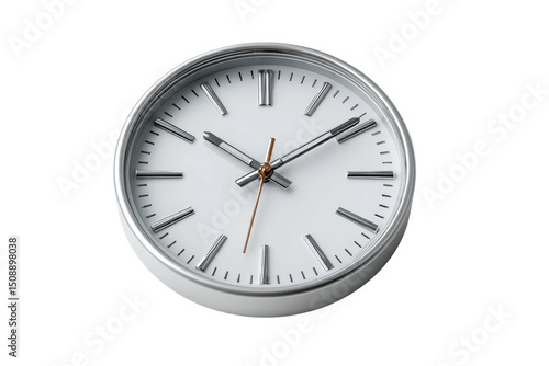 PNG Minimalist silver wall clock with orange second hand on white background