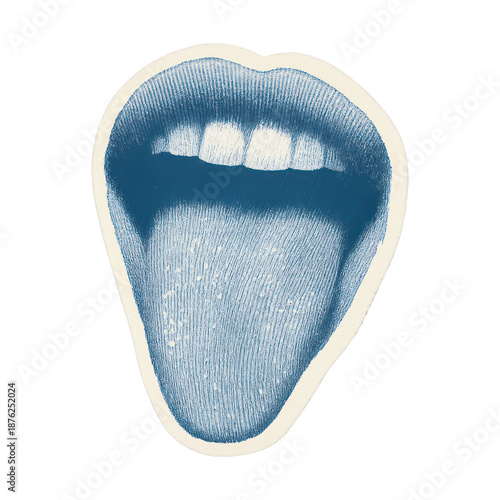 illustration, transparent, background, surrounded, imperfect, contrast, halftone, isolated, collage, duotone, element, graphic, sticker, vintage, cut-out, design, shadow, tongue, edge, mouth, paper, photo, retro, style, white, blue, experiencing, high, open, art, pop