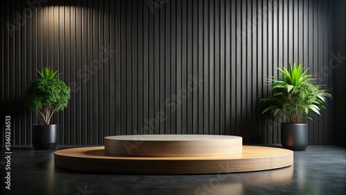 Podium mockup display with for product presentation,wall black.