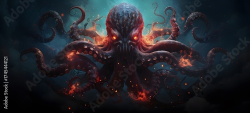 Pointillist grunge design of Kraken ifrit with abstract dotted pattern, ,generative AI