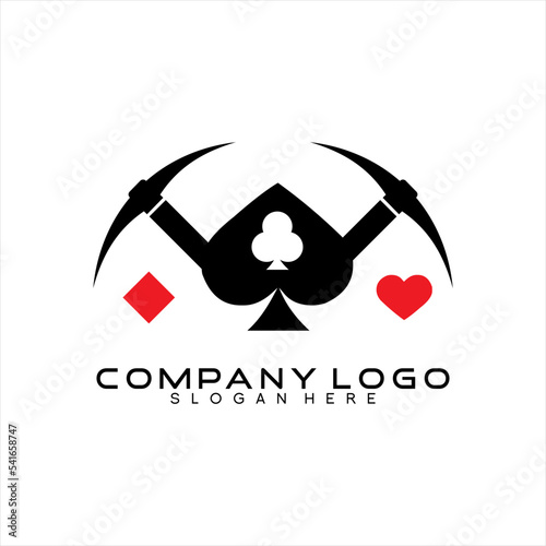 Poker club logo design with poker card symbols and traditional mining tools.