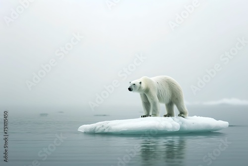 Polar Bear on Ice Floe, Arctic Solitude, waters, overcast, cold, grey
