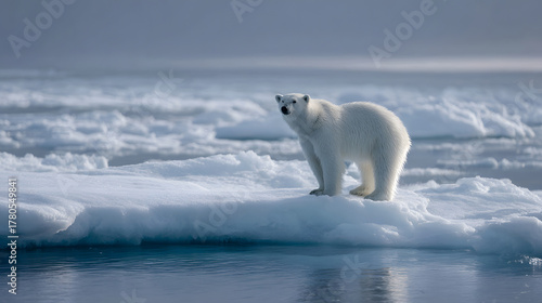 Polar Bear Standing on an Ice Floe in the Arctic