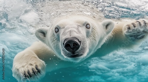 polar, bear, underwater, swimming, water, ice, arctic, ocean, wildlife, animal, nature, mammal, creature, fauna, white, fur, paw, eye, nose, mouth, head, body, blue, cold, glacé, wild, predator, hunt, fish, seal, environment, habitat, survival, closeup, portrait, photo, photo, image, snapshot