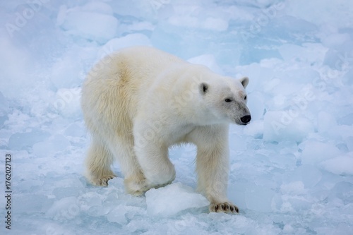 Polar bear (Ursus maritimus) on the pack ice at 82 degrees north, Spitsbergen Island, Svalbard and Jan Mayen archipelago, Norway