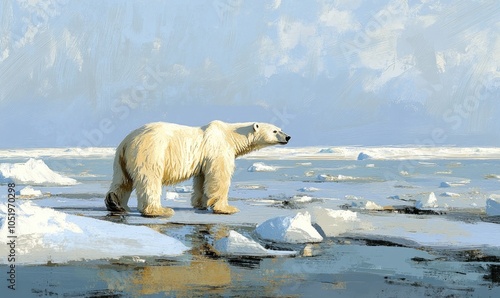 Polar Bear Walking on Ice Floes in a Frozen Landscape