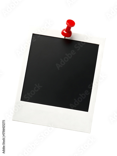polaroid, photo, picture, frame, white, black, red, drawing pin, tack, pin, stationery, supply, retro, vintage, blank, empty, copy space, graphic, element, object, isolated, clipping path, square, memory, nostalgia, scrapbook, bulletin board, announcement, reminder, attachment, fastening, sharp, pointed, round