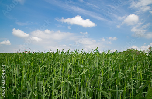 plant, grass, green, nature, sky, landscape, field, summer, land, environment, blue, outdoors, cloud, rural, crop, field, daytime, meadow, season, white, square, scene, sunny, none, scenic, horizon, greenery, plain, growth