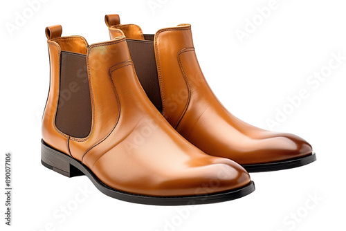 Polished Tan Chelsea Boots in a Studio Setting on a Clear PNG or White Background.