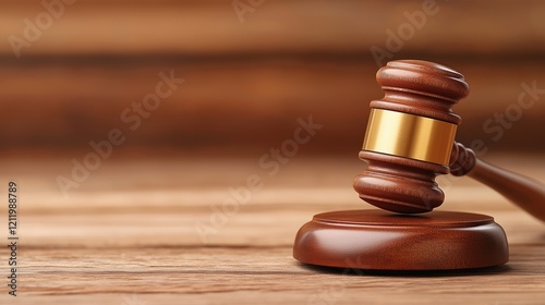 polished wooden gavel rests on its circular base, symbolizing authority and legal justice. warm wood tones create a serious and professional atmosphere, perfect for a courtroom