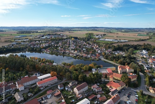 castle, lake, square, town, city, czech, aerial, panorama, city landscape, landscape, house, church, cathedral, tower, architecture, mediaeval, historical, old, town square, city centre, city centre, czech republic, europa, czechia, river, dam, nature, travel, visit, school, fort, fortification, sky, aerial view, travelling, cumulus, church tower, wall