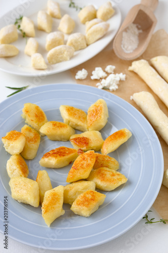 polish, pasta, gnocchi, food, receipe, cam, pasta, midday, nobody, dinner, potato, curd, traditional, speciality, kitchen, cooking, crunchy, meal, food, homemade, angular, dish, food, powder, side dish, appetence, fried, hearty, plate, blue, ro