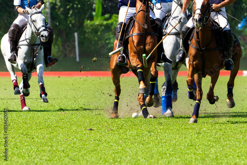 Polo player is using polo mallet hit polo balls during the match.