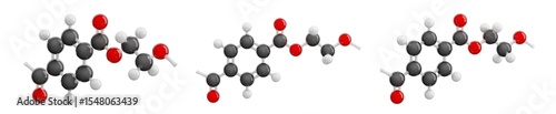 Polyethylene Terephthalate (PET). Isolated. Transparent background. Set of views presenting detailed 3D model of molecule. Molecular formula: C10H8O4. Chemical model: Ball and Stick. 3d illustration