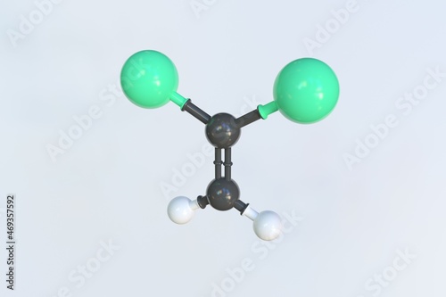 Polyvinylidene chloride molecule made with balls, isolated molecular model. 3D rendering