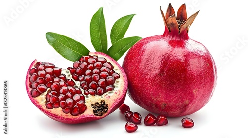 pomegranate, whole, cut, green, leaf, food, isolated, white background, healthy, fresh, organic, nourishment, dish, supermarket, up high, menu, dining, grey, gardening, herb, beverage, whole grain, leaf vegetable, farm, best, fruit, red, ripe, white, sweet, tropical, seed, dessert, half, juicy, garnet, vegetarian, diet, freshness, seed, antioxidant, pomegranate, nature, fruit