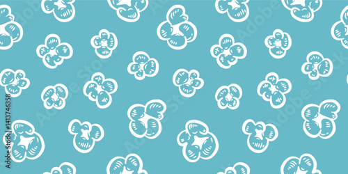 Popcorn pattern Background. doodle popcorn. popcorn seamless pattern background. Popcorn pattern for packaging snacks. Popcorn fluffy flakes pattern.