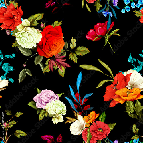 poppy, rose, wild rose, seamless, pattern, hand-drawn, decoration, textile, print, floral, white, spring, texture, clothes, green, red, flower, leaf, vector, bright, summer, cornflower, drawing, fabric, abstract, creative, illustration, decorative, retro, realistic, design, bouquet, blue, watercolor, beauty, flourish, picture, art, romantic, vintage, beautiful, background, nature, hand-drawn, idea, flowery