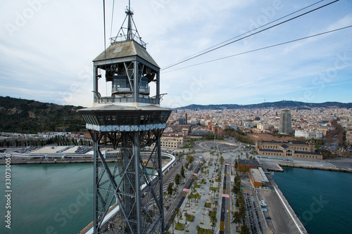 Port Vell aerial tramway. Teleferico de Barcelona.