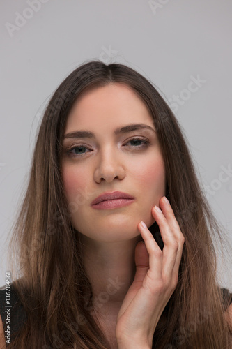 dress, portrait, face, woman, young, female, beautiful, natural, isolated, happy, girl, fashion, attractive, adult, people, beauty, hair, looking, model, person, studio, 1, smile, pretty, background, make-up, hand, closeup, success, cute, modern, lady, brunette, professional, business, confident, healthy, businesswoman, smiling, honed, grey, head, closeup, single, skin, cheerful, sensual, stylish, gorgeous, indoor