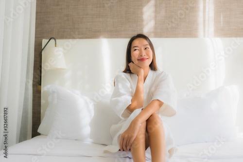 Portrait beautiful young asian woman relax smile on bed in bedroom