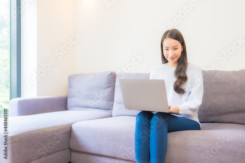 Portrait beautiful young asian woman use laptop for working