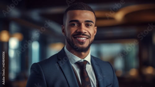 Portrait capturing a businessman professional in a modern office. Generative AI.