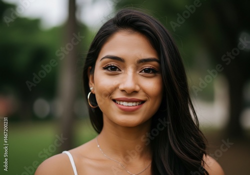 woman, young, smile, hair, long, black, face, beauty, look, eye, skin, brown-haired, make-up, organic, portrait, outside, luck, joyful, confidence, elegance, charming, seductive, attractive, softer, positive, expression, emotion, straight hair, holding, medicinal plant, relaxed, summer, light, nature, environment, model, photograph, image, missy