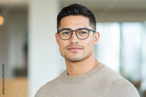 developer, portrait, male, hispanic, 30s, confident, goggles, modern, casual attire, stylish, focused, indoor, office, workspace, elegant, business, professional, composed, serene, bright, natural, programmer, innovative, calm, young adult, creative, successful, productive, casual clothes, minimal, tech, approachable, techie, green, design, trendy, smart, vibrant, expertise, guy, face, people, photogenic, smile, expression, smiling, eyeglass