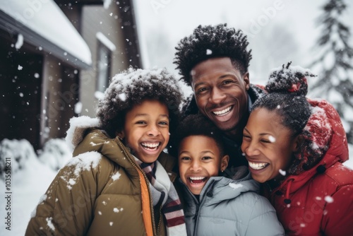 people, portrait, african, american, family, smiling, house, snowfall, winter, outdoors, happy, emotion, togetherness, home, parenting, children, bonding, cold weather, snow, daytime, family life, joy, oneness, seasonal, love, shelter, protection, holiday, front yard, celebration, cheerful, black, inclusion, diversity, equity, warmth, community, winterly, three, lifestyle, copy space