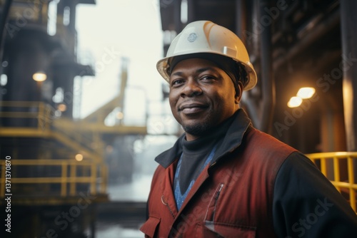 people, portrait, african, american, male, men at work, oil, platform, man, industry, energy, autumn, outdoors, emotion, activity, occupation, work, engineering, job, professional, safety, hard hat, uniform, expertise, career, strength, confident, determined, focused, industrial, equipment, offshore, responsibility, adult, black, culture, background, equity, inclusion, diversity, technology, modern, 1, lifestyle, copy space